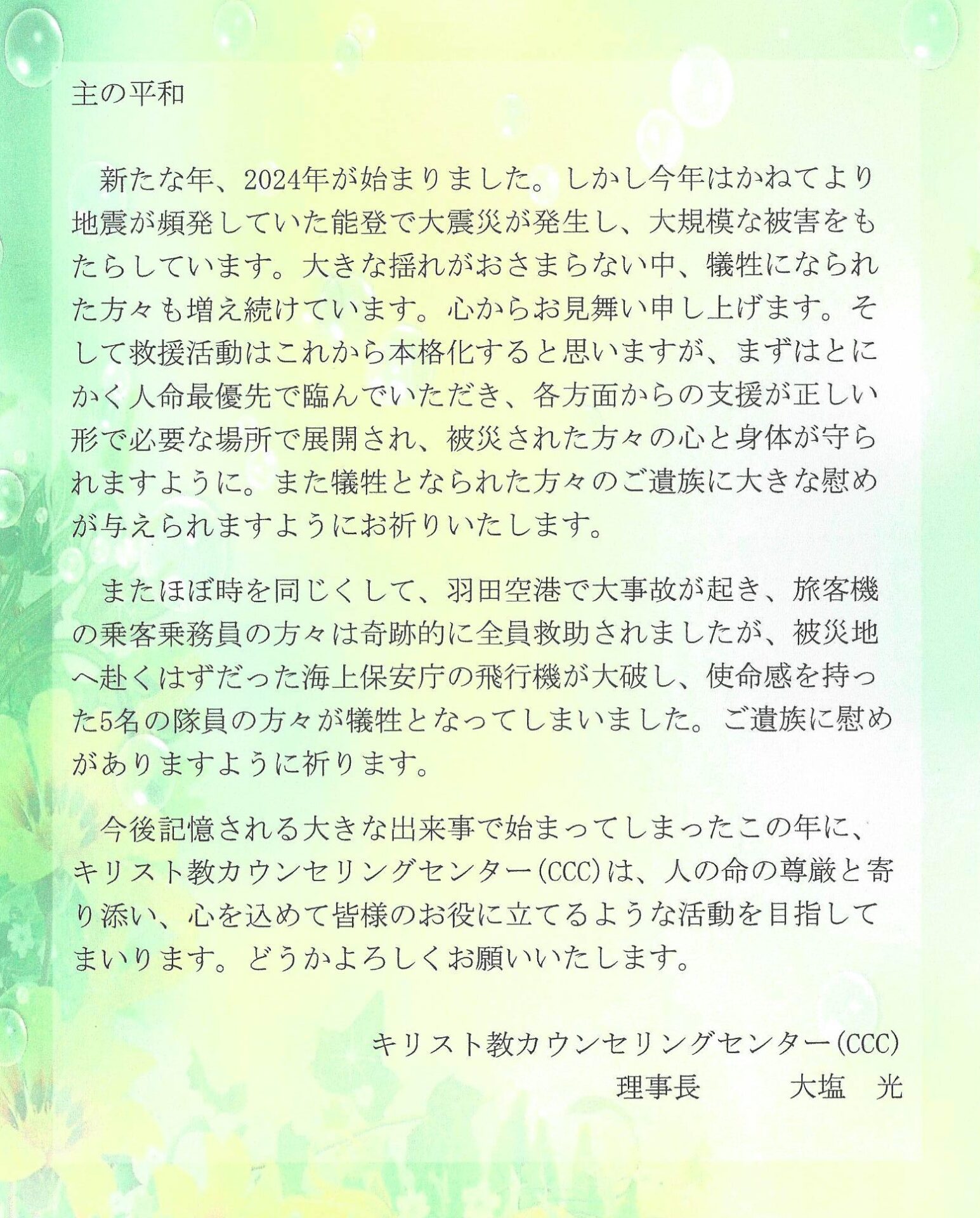 2024年はじめにあたり理事長よりご挨拶申し上げます 2024.01.05 LINE note オンライン無料説明会!キリスト教カウンセリング講座(2025年度)の無料説明会を開催します。 前の記事 飛報!2024年度ベーシックコースの受講料と日程が変更になります! 次の記事